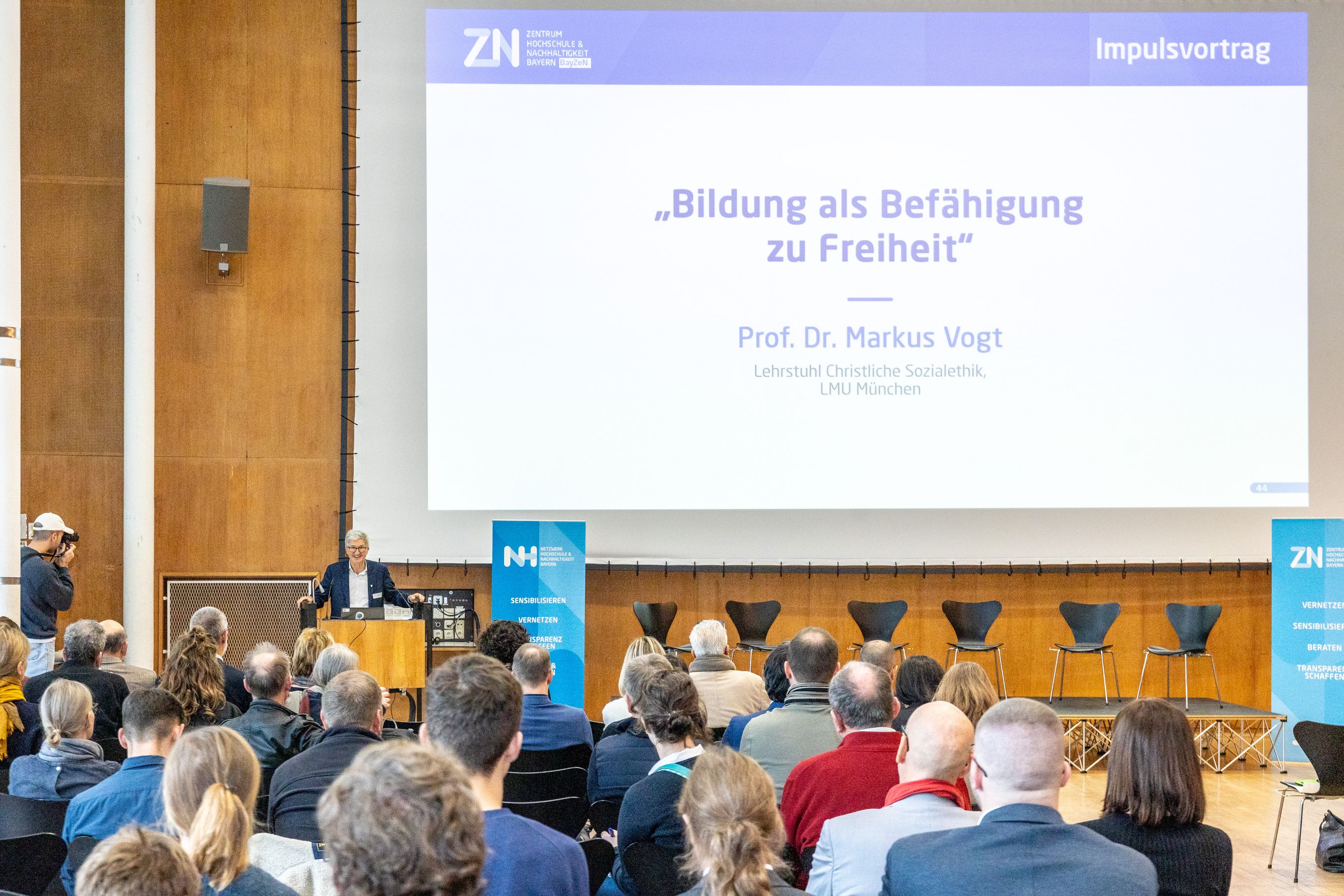 PowerPoint-Präsentation bei der Jubiläumsveranstaltung des BayZeN und des NHNB mit dem Rahmenthema Zukunftsdialog – Bildung, Nachhaltigkeit und Demokratie“.